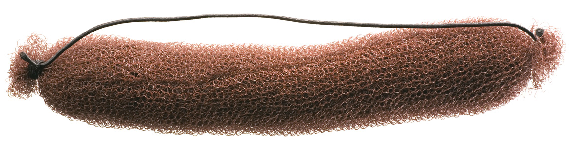 Длинный универсальный валик, который можно использовать как в прямом, так и в скрученном в форме бублика виде для создания различных причесок с закручиванием волос. Изготовлен из текстильной сетки.