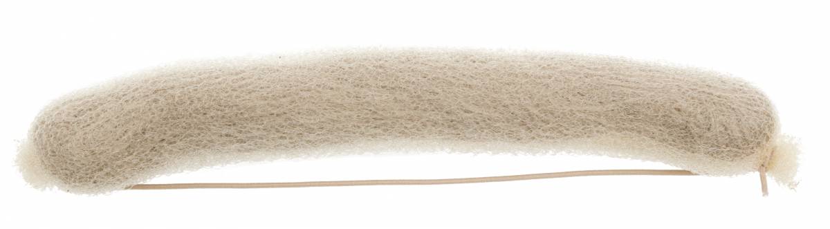 Длинный универсальный валик, который можно использовать как в прямом, так и в скрученном в форме бублика виде для создания различных причесок с закручиванием волос. Изготовлен из текстильной сетки.